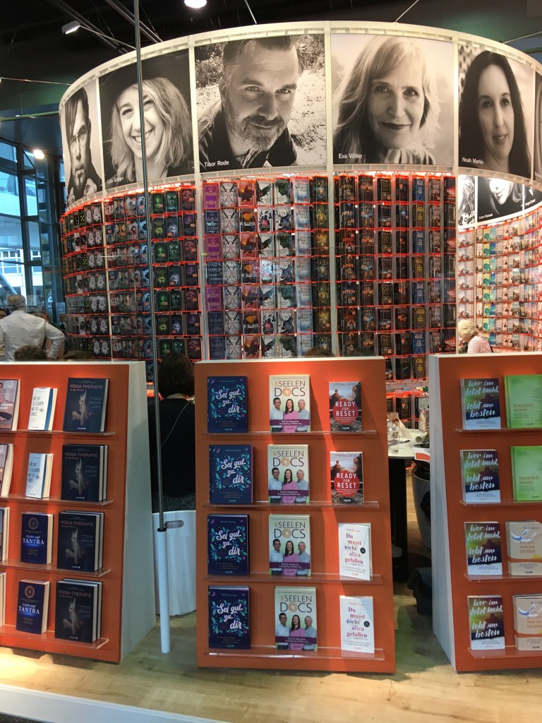 On 20th October I headed out to Frankfurt for a visit to the world’s largest book fair. My publisher had invited me for half an hour of meet & greet. Not knowing what to expect, I never dreamed the event would turn into an accumulation of numerous Christian authors and bloggers, most of whom I’d never met in person before. We’re all connected through social media and were one and all thrilled to finally meet face to face. The pic below shows seven authors and six bloggers, but there were many more in the background engaged in conversation.