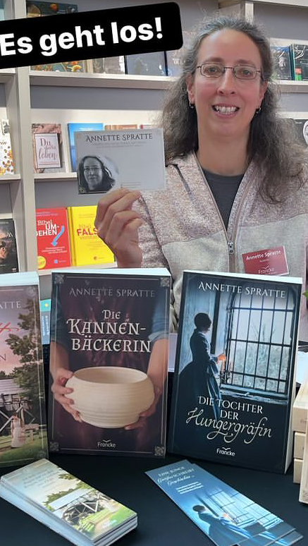 Als ich vorsichtig beim Francke-Verlag anfragte, ob sie mich bei der Frankfurter Buchmesse gern am Stand haben würden, wusste ich noch nicht so recht, was mich erwartet. Wir einigten uns auf eine halbe Stunde Meet & Greet, was ich im Vorfeld fröhlich in den sozialen Medien verkündete. Anfangs waren die Reaktionen noch recht verhalten, doch je näher der Termin rückte, desto mehr Bekannte aus Instagramhausen kündigten sich an. Was dann am 20. Oktober am VEB Gemeinschaftsstand ablief, kann man nur als christliches Autoren- und Bloggertreffen bezeichnen.